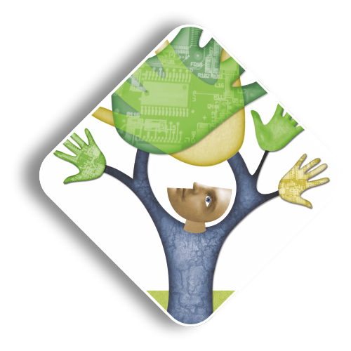De cirkel staat hier voor de mens en het vierkant voor de organisatie.